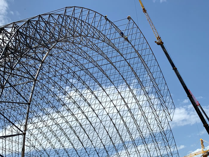 (2)网架加工前应对现场尺寸进行复测,确认无误后方可进行加工、安装;网架制作、运输、安装应遵守《空间网格结构技术规程》JGJ7-2010、《钢网架安庆螺栓球节点》JG/T 10-2009、《钢网架安庆螺栓球节点用高强度螺栓》 GB/T 16939-2016、《安庆钢结构安庆工程安庆施工规范》 GB50755-2012、《安庆钢结构安庆工程安庆施工质量验收标准》 GB50205-2020。